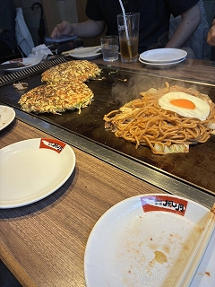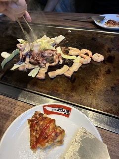 昼食は「鶴橋風月 千日前店」で鉄板焼きコースを堪能。