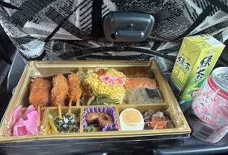 道中では「串カツと大阪名物弁当」でお腹を満たし、いざ万博会場へ。